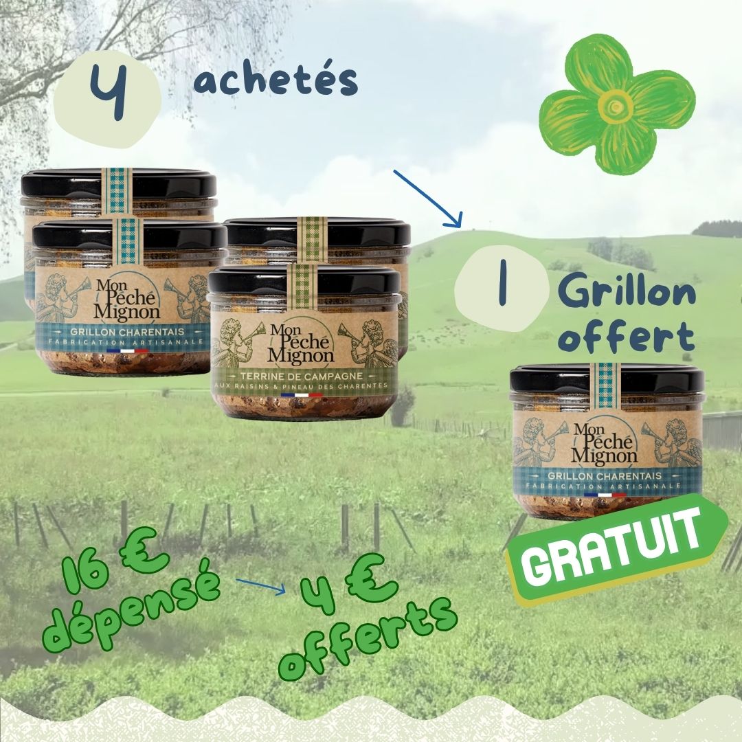 3 × Grillons charentais bio; 2 × Terrine de porc au pineau des Charentes